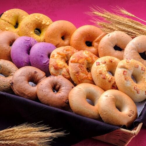 内容量:プレーン、ベーコンチーズ、シナモンレーズン、チョコ、紫芋、クルミ、黒糖、セサミ、オニオンチーズ、トマト&バジル